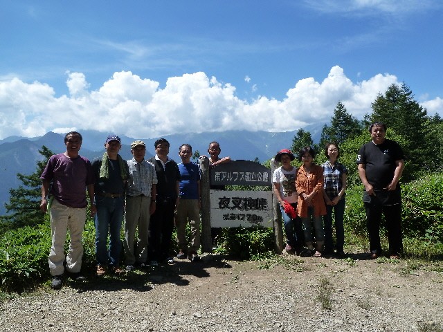 夜叉神峠(1,770m)後方は南アルプス連峰(雲があり残念!)