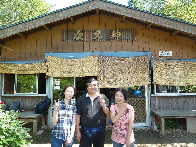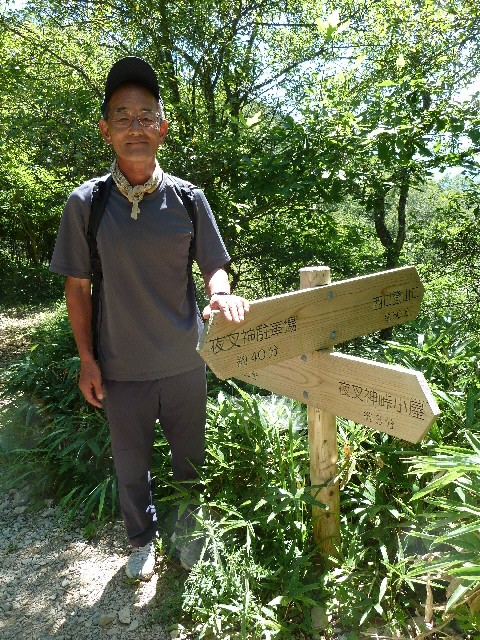 峠手前の稜線標識(1,700m付近)で(この看板を古屋君自身がここまで担いで設置した)