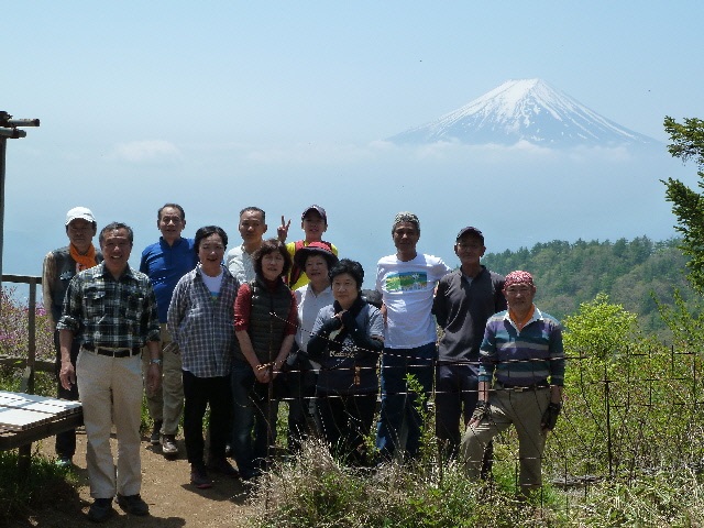 今回で3回目のリベンジ、天気も良く頂上から富士山も壮大に眺められた。眼下には西桂の町並みが映る。御坂峠(旧道)に入り太宰治「富嶽百景」にある「富士には月見草がよく似合ふ」の碑を見て、太宰が宿泊していた天下茶屋で休憩後、下山した。