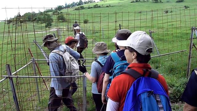その後我々が柵の間を通り八ヶ岳牧場の中へ入る