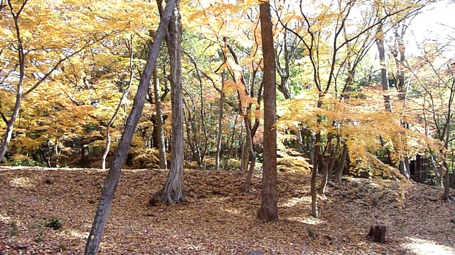 興因寺の紅葉の下で