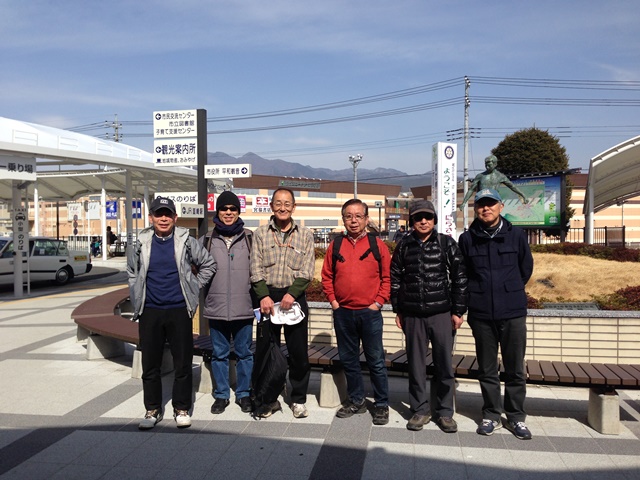 北風の吹き荒れた昨日と打って変わっての穏やかな快晴の午後。6名のオヤジ連が武田家の歴史に触れながら心地よいウォーキングを楽しんだ。 次回からは、ウォーキング後にご苦労さん会を開催する場合は、集合時刻を午後2時にすることを全員一致で確認した。 と言うことで、有志3名(飯野、小林、古屋)は甲府へ移動し、駅前の「いけ田」で軽く一杯酌み交わし疲れを癒した。 | |