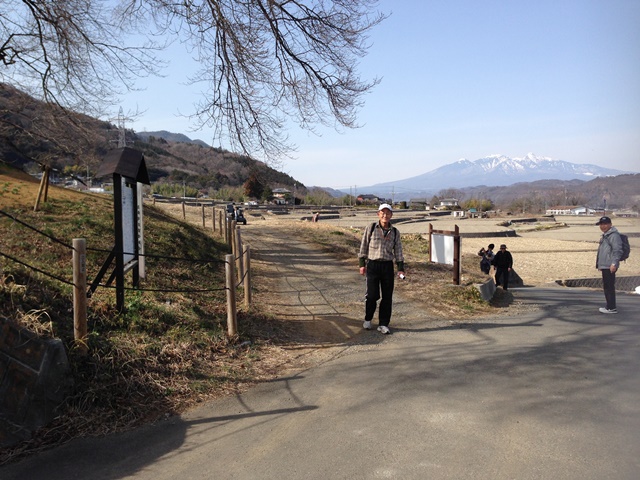 わに塚(王仁塚)のサクラ。遠くに八ケ岳を望む。
