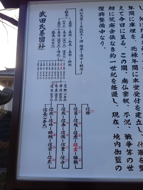 武田信玄は武田家の16代目とのこと(願成寺の解説板)