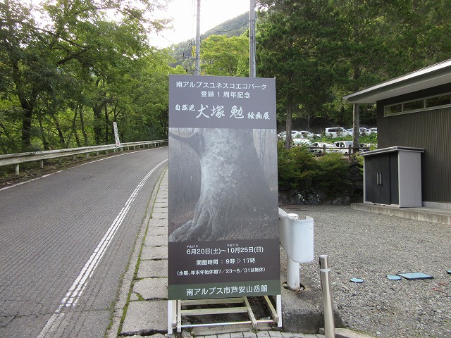 竜王駅(車)⇒芦安小学校→沓沢集落→チロル学園→金山沢公園→芦安山岳館(犬塚勉絵画展)→山の神→桃の木温泉→岩園館→芦安小学校(車)⇒竜王駅