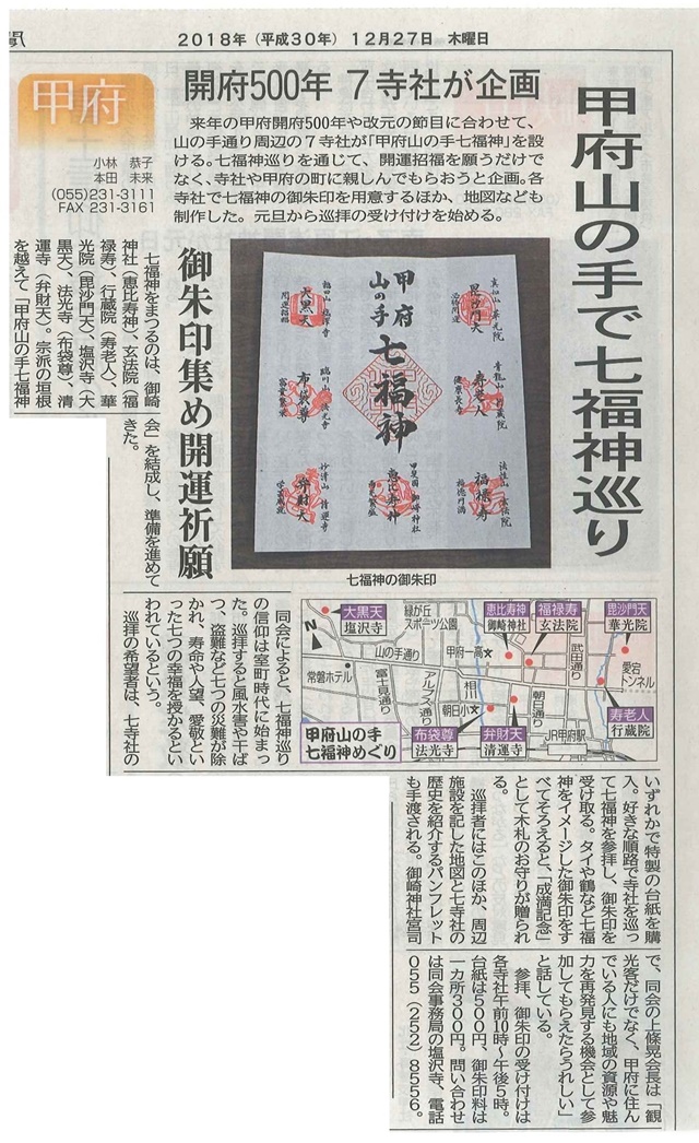 〇日 時:2019年1月13日(日)13:00~ 〇コース:甲府山の手七福神めぐり 〇参加者:17名 〇新年会:17-2+2=17名 |
