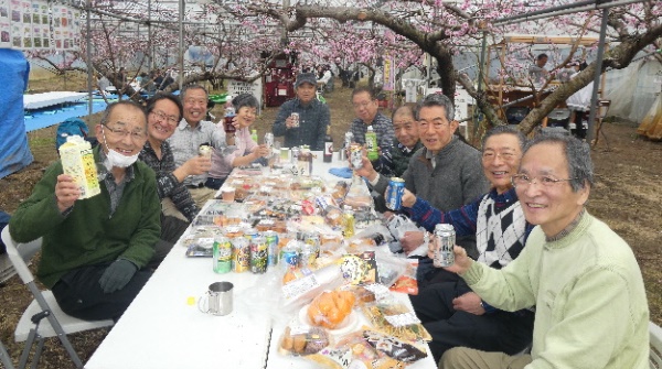 朝9時に甲府駅集合。 今回が初めてのY君が参加、先ずは集合写真。 朝気通りを横切り、住吉のスーパーへと向かう。 ここで、石和からの2人組と合流し、店内で買い物。 I君は所要のため、ここで別れた。 残り10名で目的地へ、11時40分頃到着。 ビニールハウスの中は、一面がピンクの花、花、花・・・・・。 それは、もう見事としか言いようのない風景。 この日に満開になるよう、昨年12月頃からハウスの温度調節をしているそうだ。 いつものように農園主の河野さんご夫妻が優しく出迎えてくれた。 早速飲み物で乾杯!! 楽しいひと時を過ごした。 Report by J.Yamamoto |